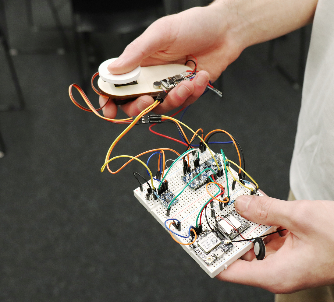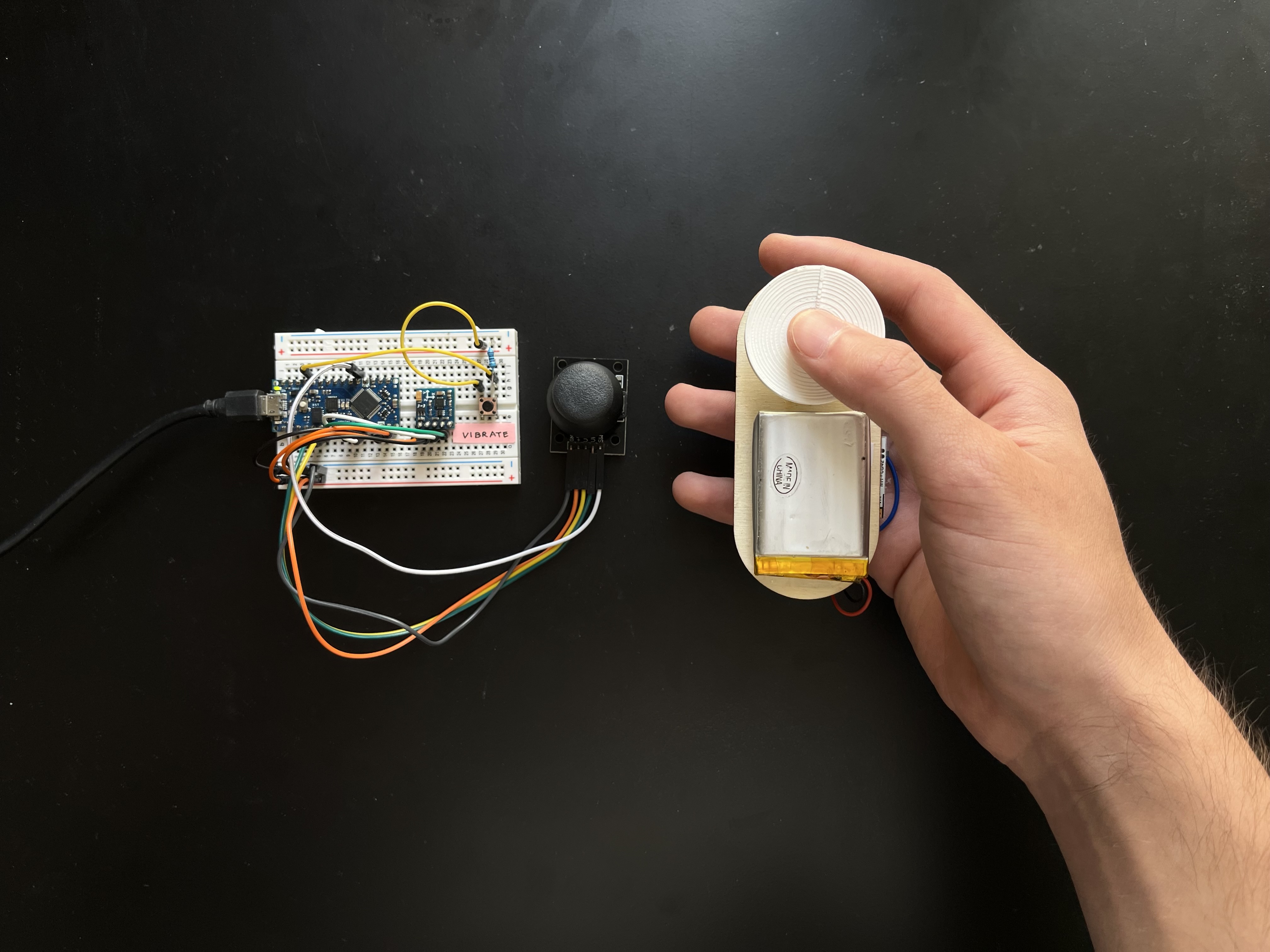 We explored different ways to test my concept — taking into consideration our limited time and budget. Ultimately, we decided to conduct a Wizard-of-Oz experiment. During out live demo, test users were blindfolded and had to navigate an indoors obstacle course, guided by our Tactile Compass, which was operated remotely by a member of our team.